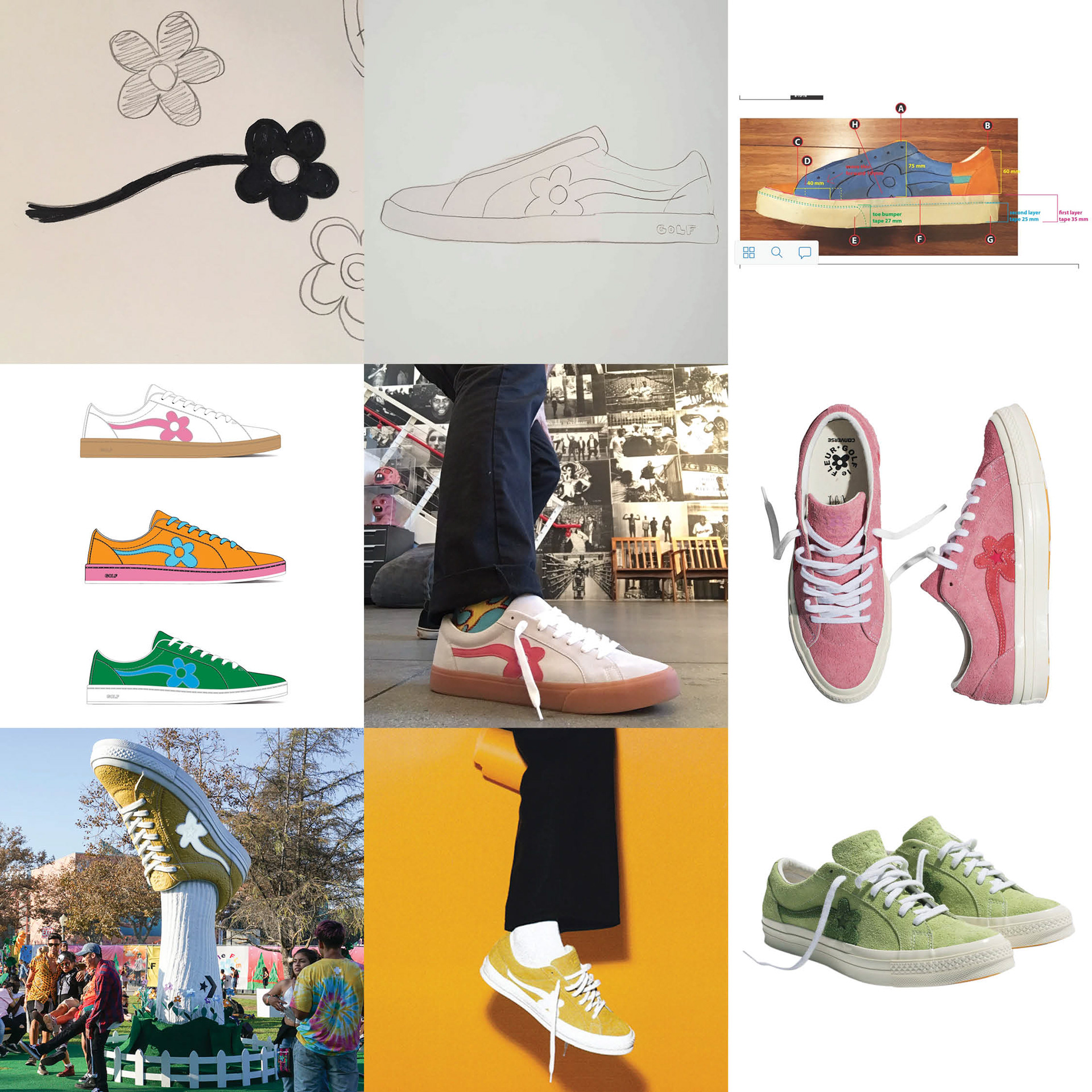 Logo design & initial shoe development for the Converse x Golf le Fleur shoe. This venture started as an in-house, independent shoe brand under Golf Wang, which eventually morphed into a collaboration with Converse.